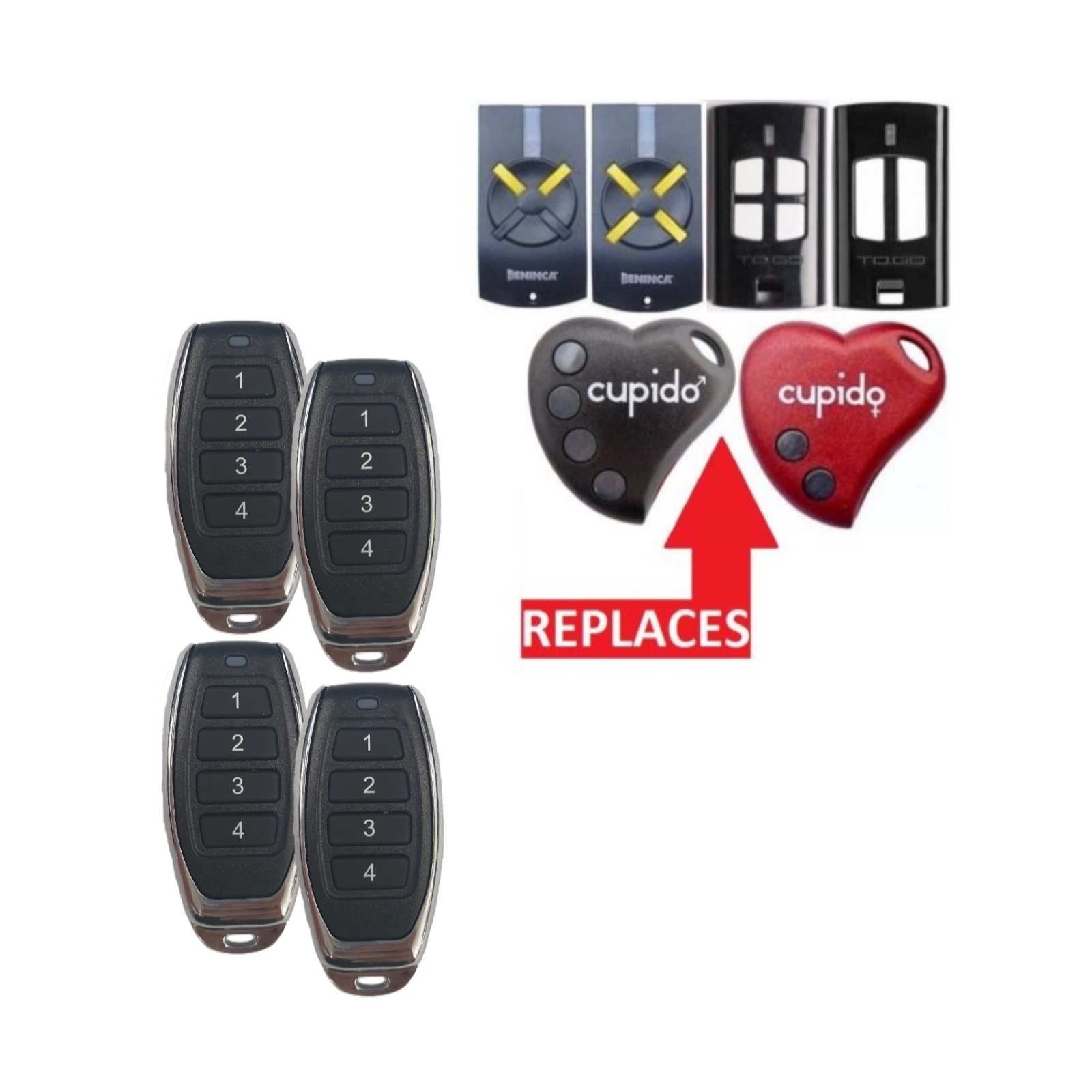 - 4 x Remotes (interchangeable with Beninca remotes listed above)