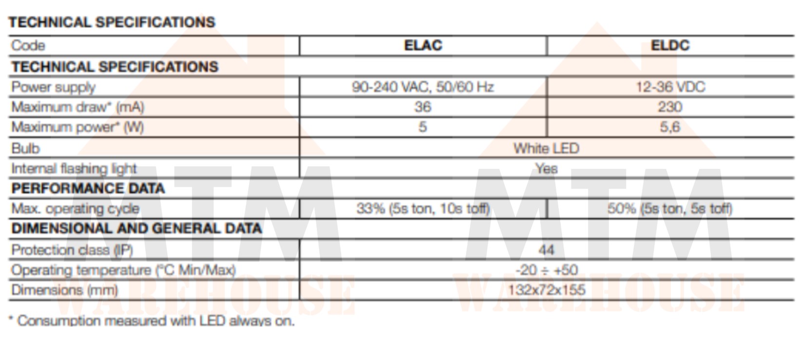 ELDC (12-36 VDC), ELAC(90-240 VAC)