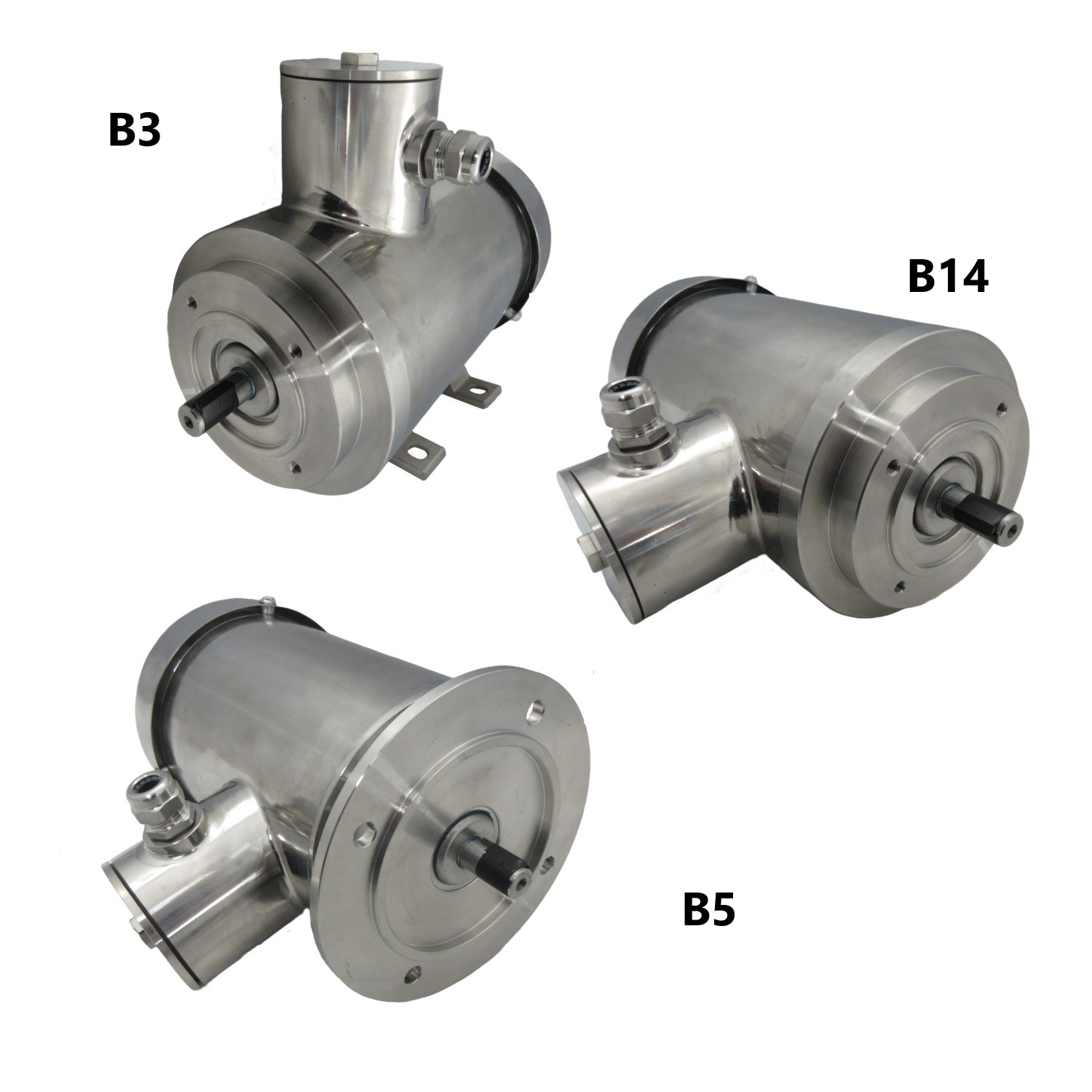 Stainless Steel Motors designed to meet the severe sanitation requirements of food grade and high pressure washdown motor applications in the pharmaceutical, food and beverage, processing and packaging industries. Suitable for working with dairy and milk processing, water supply, cosmetics industry, meat processing, and other applications in extremely wet environments.